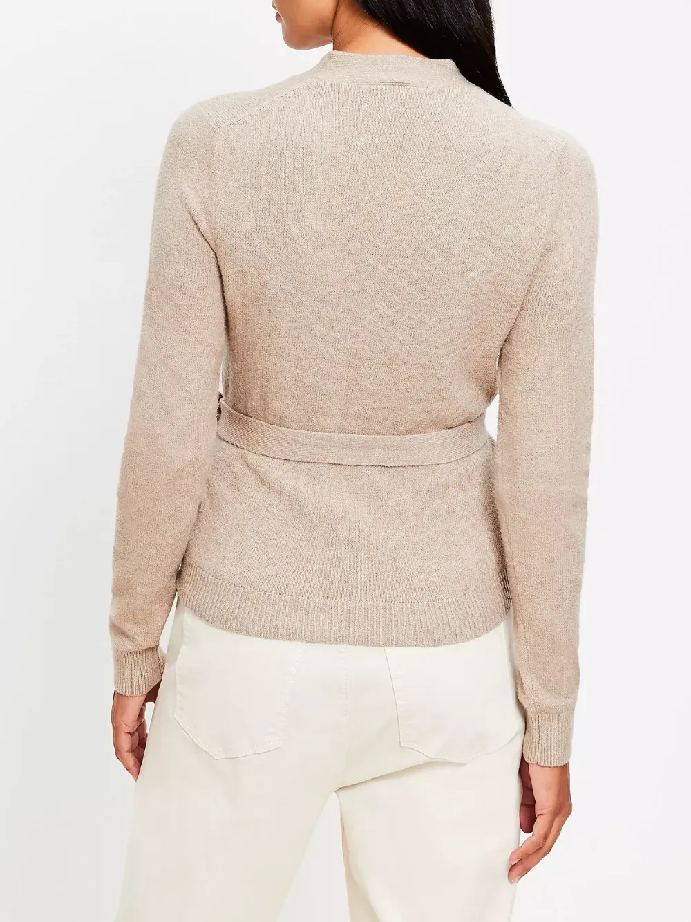 Wrap looks in fresh and flirty style, courtesy of this soft cotton blend knit wrap sweater - as pretty as it is comfy. V-neck. Long sleeves. Ties at waist.